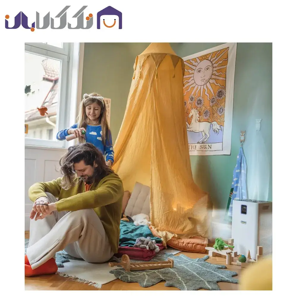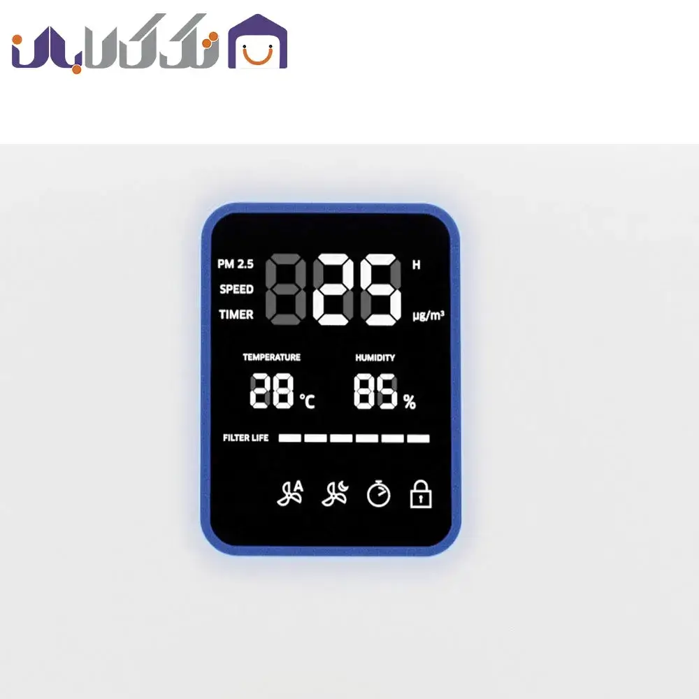 - بر روی بدنه نمایشگری با پنل لمسی برای نمایش کیفیت هوا در ذرات PM2.5 بر حسب میکروگرم تعبیه شده.