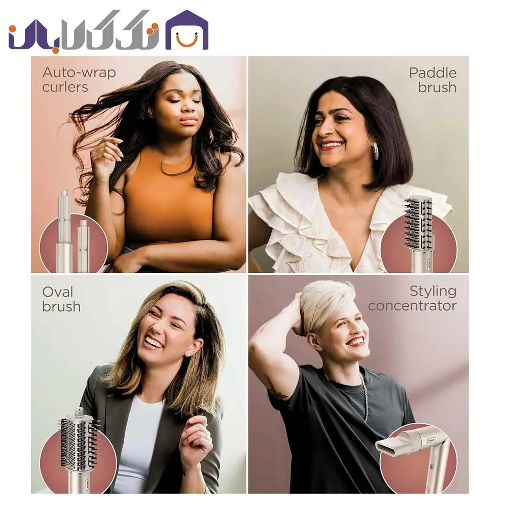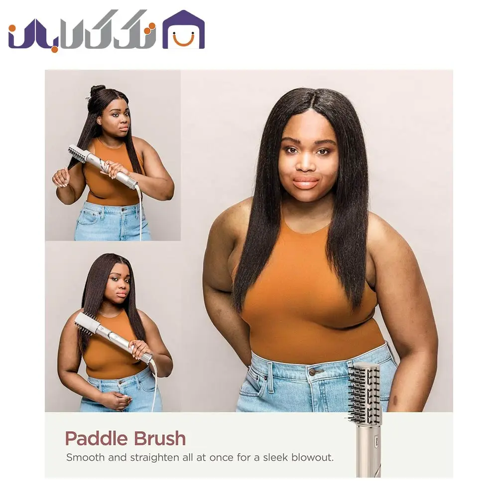 - دارای برسهای کاربردی شامل، برس بیضی (Oval Brush): این برس با جریان هوای قوی، موها را نرم، بدون وز و پرحجم و پرجلوه میکند. برس تخت (Paddle Brush): برای صاف کردن و از بین بردن وز مو، در حالی که موها را همزمان خشک میکند، ایدهآل است. مناسب برای موهای بلند و ضخیم جهت صافکردن با حجمدهی کنترلشده.